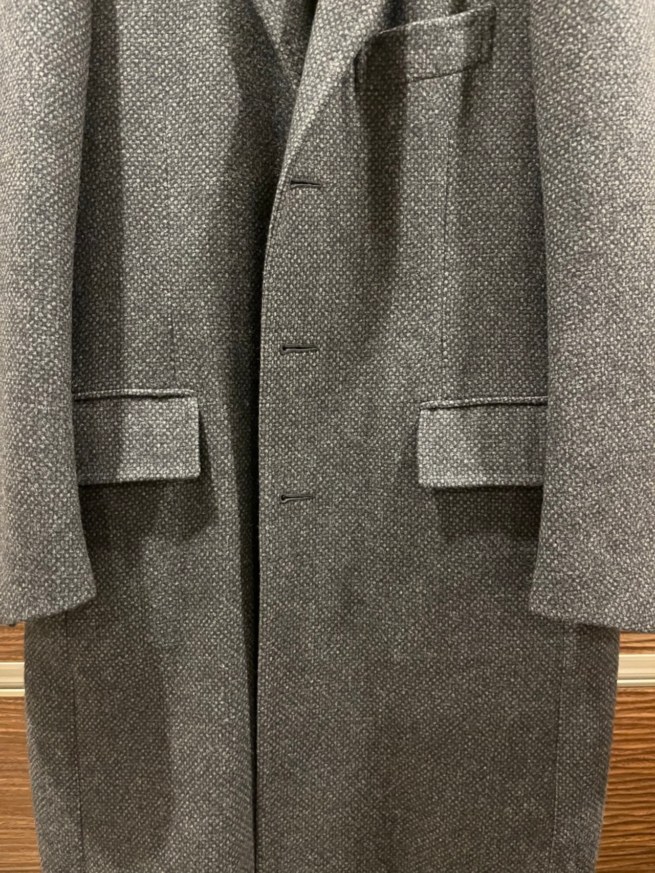 私が購入したのは、たしか2017年の秋ごろで、価格は77万円でした。クラシックなチェスターフィールドコートで、肉厚のウール100%で仕立てられていて、とても暖かいです。