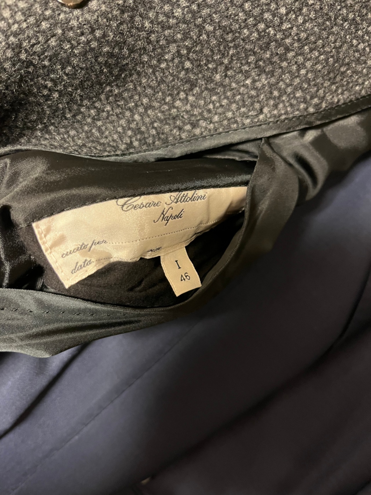 このダークグレーのウールコートは、2017年に惜しまれつつ閉店した最高のメンズセレクトショップだったTIE YOUR TIE青山がCesare Attolini(チェザレ・アットリーニ)に別注した最高級ウールコートです。